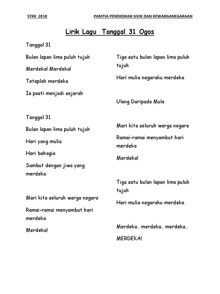 Lirik Lagu Tanggal 31 Ogos Pdf